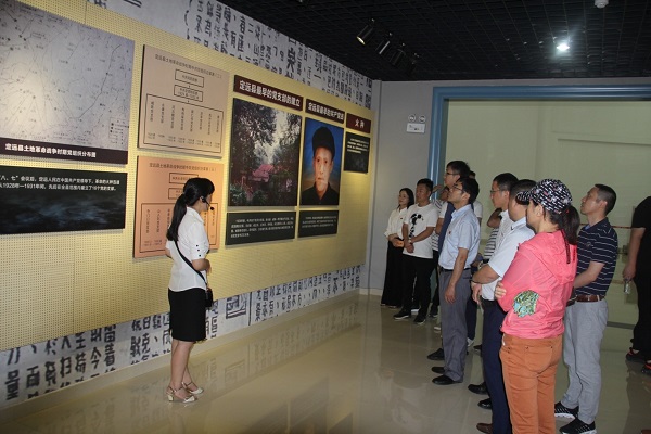 藕塘為抗日戰(zhàn)爭(zhēng)時(shí)期津浦路西革命根據(jù)地中心,素有“小莫斯科”之譽(yù)稱,是我省首批愛國主義教育基地。在莊嚴(yán)肅穆的烈士陵園,全體人員首先在講解員的帶領(lǐng)下依次參觀了藕塘紀(jì)念館的各個(gè)展區(qū),觀看珍貴的文物、文獻(xiàn)、照片等資料,回顧黨的光輝歷程,追尋英雄足跡,緬懷先烈事跡,再次被劉少奇、葉挺、羅炳輝等老一輩無產(chǎn)階級(jí)革命家的壯烈事跡所感動(dòng)。隨后來到紀(jì)念館大廳前,全體黨員面對(duì)鮮紅的黨旗,重溫入黨誓詞,進(jìn)一步牢固“不忘初心、牢記使命”的政治信念。