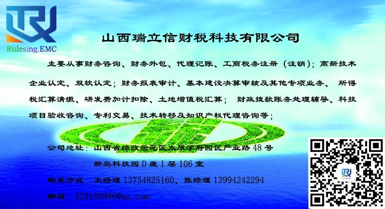 CopyRight © 2023 山西瑞立信財(cái)稅科技有限公司 www.www.ssczzc.com 太原高企認(rèn)定-山西高新技術(shù)企業(yè)認(rèn)定  All rights reserved.